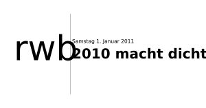 2010 darf trotzdem in die Geschichte eingehen. Ich war noch nie so oft im Kino und habe auch noch nie so oft "Konzerte" besucht. Malmsheimer und die Popolskis waren dabei die Highlights. Und das war nur möglich, weil sich das Team auf der Arbeit verändert hat. Berni hat viel eigene Kulturdynamik, so oft wie er auf Konzerte und Ähnliches geht, werde ich wohl nicht mithalten können. Aber ich will unbedingt mehr an dieser Dynamik teilhaben.