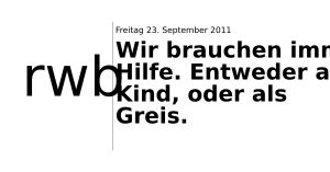 Wir brauchen immer Hilfe. Entweder als Kind, oder als Greis.